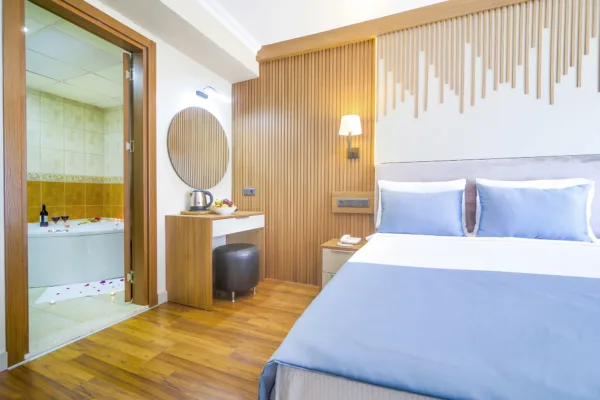 Balayımız için jakuzili süit odayı tercih ettik ve kesinlikle doğru karar vermişiz. Odadaki jakuzi çok temiz ve romantik bir atmosfer yaratıyor, özellikle akşam saatlerinde balkondan Dalyan Nehri’nin manzarasını izlerken harika oluyor. Dalyan’ın doğal güzelliklerini keşfetmek için mükemmel bir konum. Romantik bir kaçamak arayan çiftlere kesinlikle tavsiye ederim!