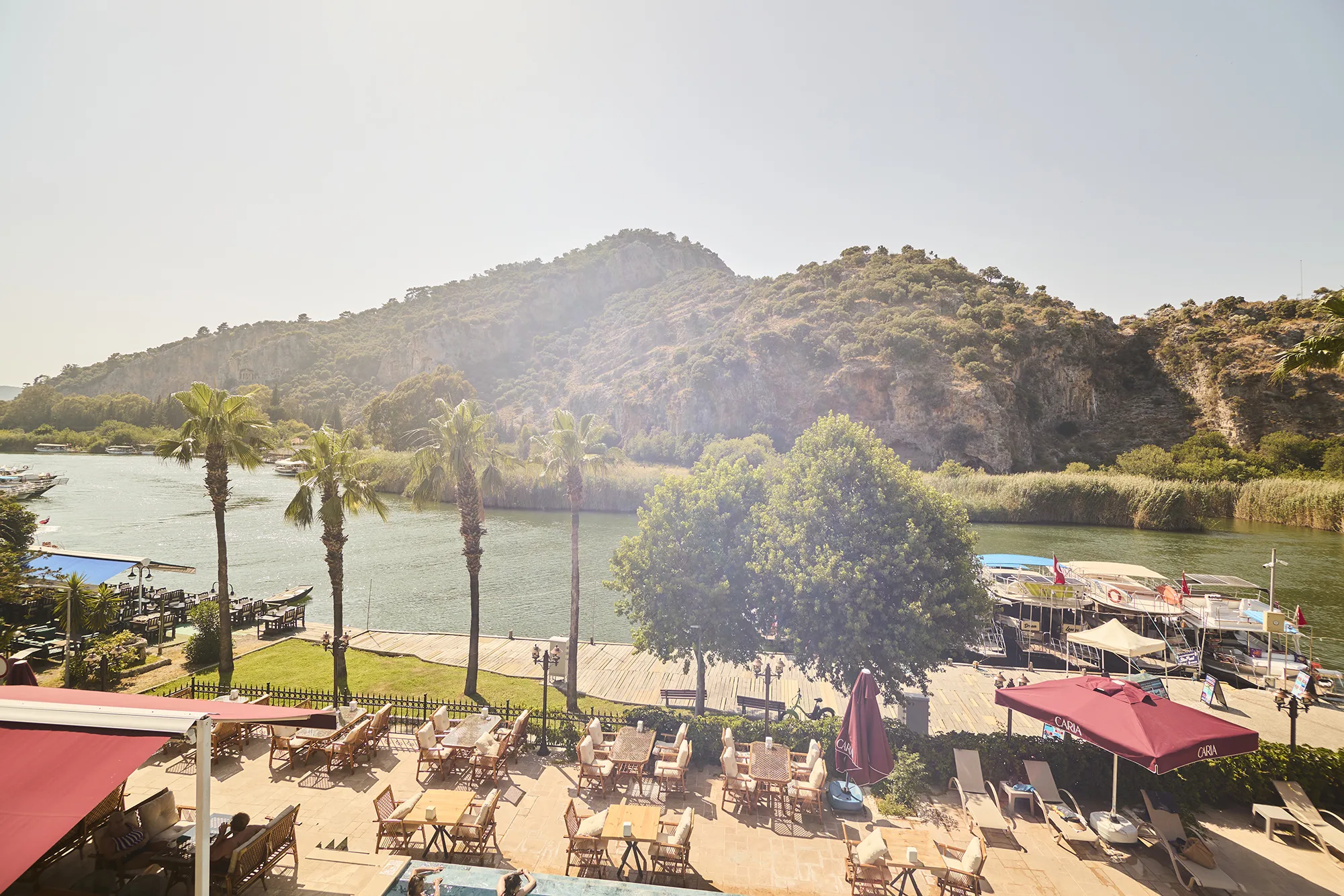 Caria Hotel’de 4 gece kaldık ve çok memnun ayrıldık. Otel temiz, personel güler yüzlü ve yardımsever. Odamızın balkonundan nehir manzarası muhteşemdi, kahvaltı çeşitli ve lezzetliydi. Dalyan merkezine yürüme mesafesinde olması büyük avantaj. Havuz alanı sakin ve huzurlu. Kesinlikle tekrar geleceğiz ve tavsiye ediyoruz!