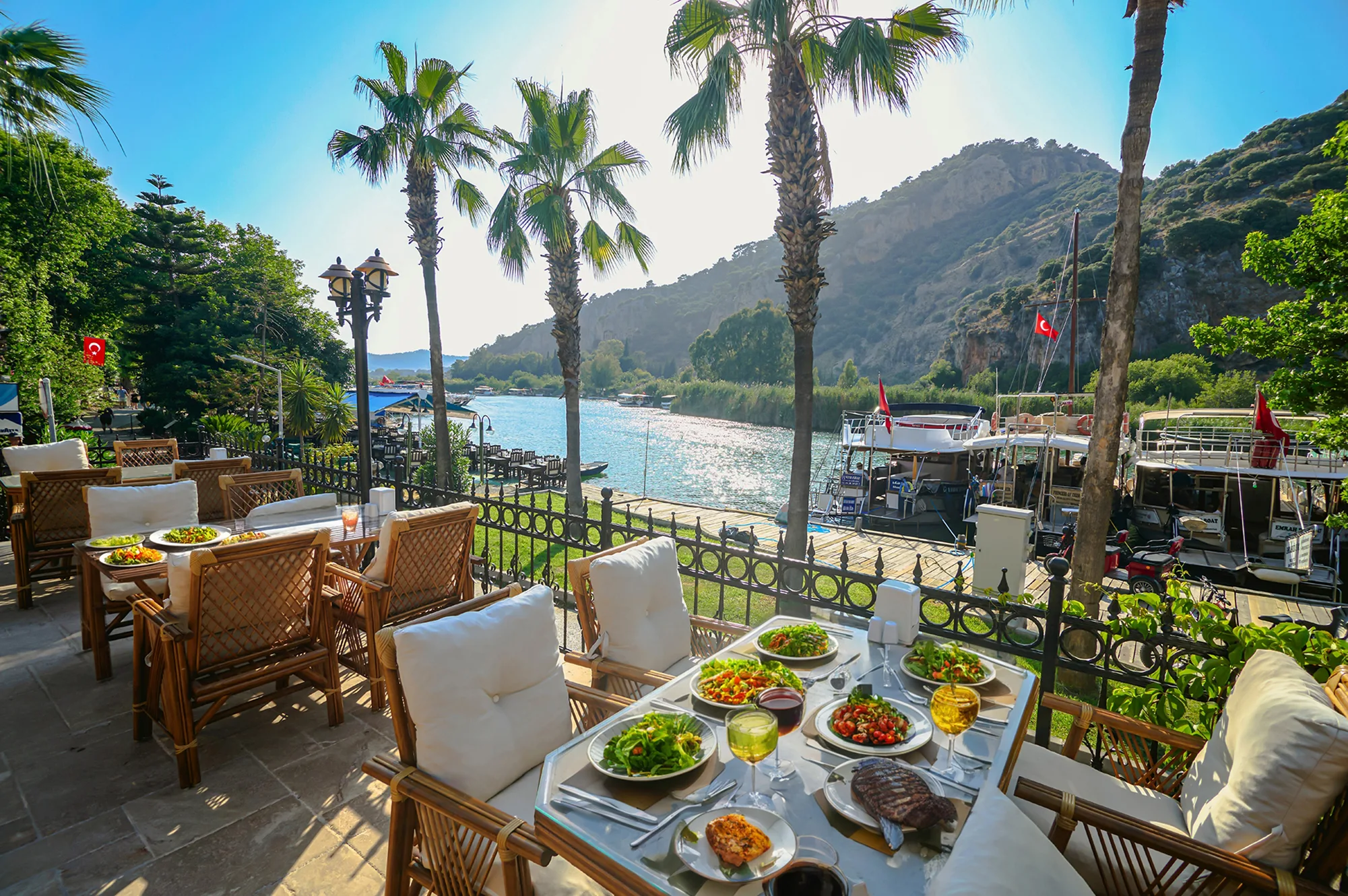 Tarihi kral mezarlarının eşsiz manzarasına karşı, taptaze balık ve deniz mahsullerimizden ustalıkla hazırlanan steak seçeneklerimize, Akdeniz esintili makarna ve salatalarımızdan özel tatlılarımıza kadar her damak zevkine hitap eden bir menü sizi bekliyor